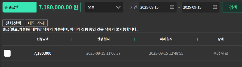 시스템으로 일단 출금하고,